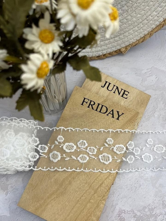 نوار تور دانتل یکی از پرکاربردترین متریالها در خیاطی مدرن و هنرهای دستی است که ظرافت و زیبایی دوچندانی به خروجی کار میبخشد. این مدل خاص با طراحی مینیمال، شامل ردیفی از شکوفههای دایرهای شکل است که با ساقههای ظریف به یکدیگر متصل شدهاند. حاشیههای بالا و پایین این نوار با دالبرهای توری بسیار ریز تزئین شده که باعث میشود هنگام دوخت روی لبه کار، نمایی بسیار حرفهای و تمیز ایجاد کند.